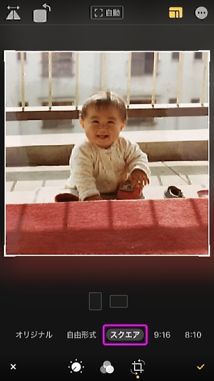 ※この方法で、スクエア以外の縦横比を指定することで、お好みの縦横比にて、お好みの部分を写真から切り抜くことができます。